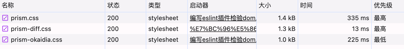 prism.css和prism-okaidia.css,但是没有命中的media(暗色主题)不会参与渲染(也就不会阻塞渲染)。 -